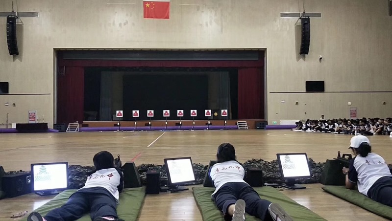 为响应国家学生军训政策,实现轻武器射击训练目的。青岛九中使用我司模拟激光打靶训练设备实施军训,了解轻武器的战斗性能和基本的射击理论,掌握射击的动作要领,完成轻武器模拟射击训练。轻武器射击训练系统,采用激光模拟射击实现,可避免实弹产生的安全问题亦可实现射击训练的目的。轻武器激光模拟射击训练系统,采用高仿真95式突击步枪,可实现手拉枪栓后坐力,击中靶标自动报环。射击端设有报靶显示器,可实现0.1环精准报靶,同时可实现成绩分享等功能。激光模拟射击训练系统解决了军训射击中遇到的重重难题,操作简单,体验逼真。